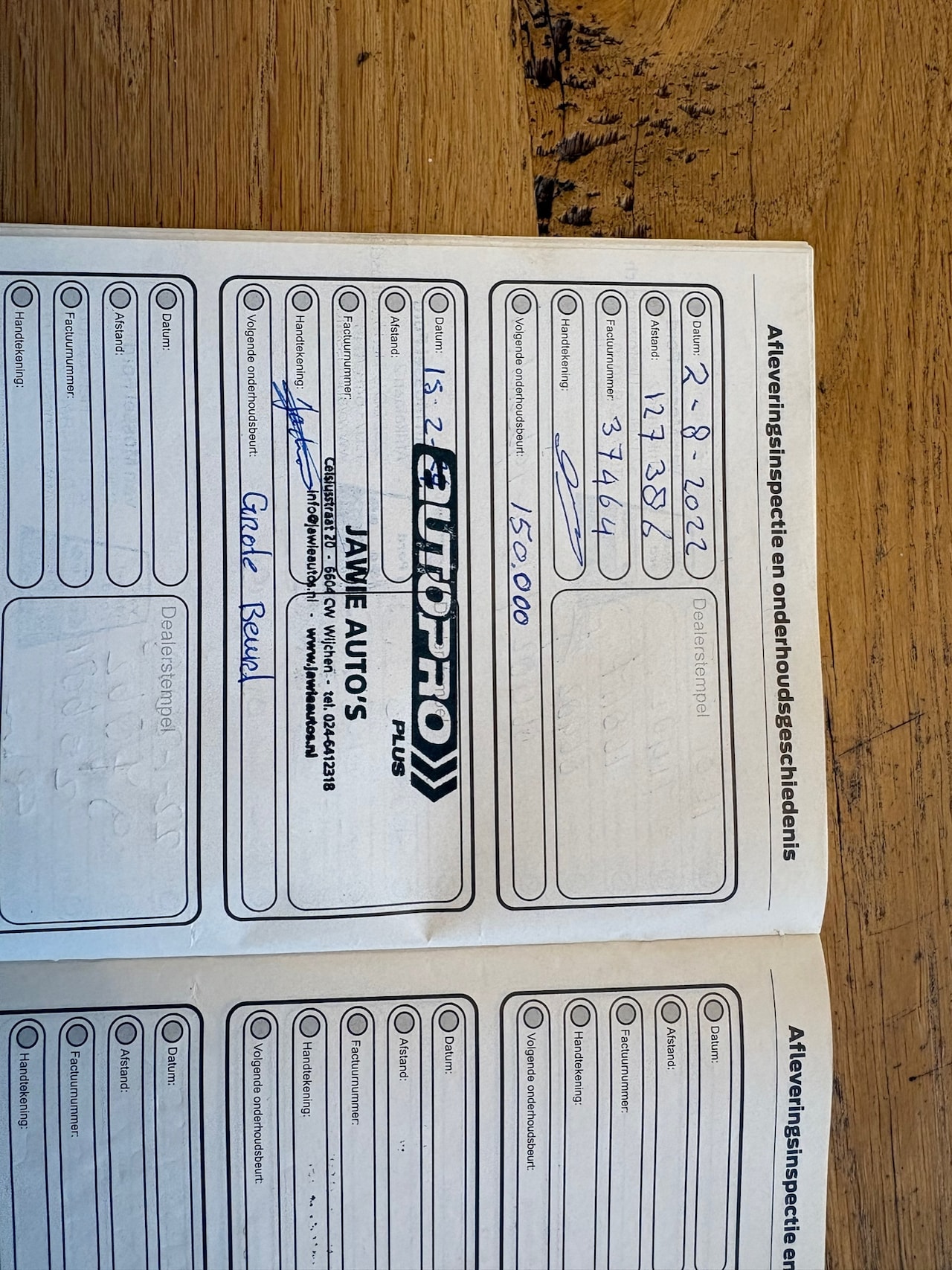 | APK | Bij aflevering |