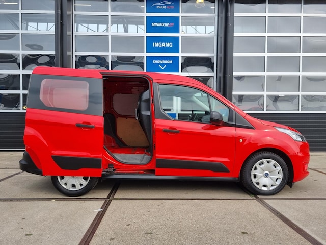 Fraaie 3-persoons Ford Transit Connect 1.0 Ecoboost L1 Ambiente welke o.a. is voorzien van airconditioning, parkeersensoren, bluetooth radio, mistlampen, bumpers in kleur, tussenschot met ruit en achterdeuren met ramen.
