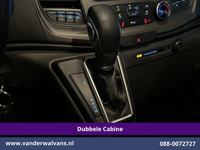 131pk sterke Ford Transit Custom Automaat L2H1 dubbel cabine met airconditioning, 6 zitplaatsen en camera. Dealer onderhouden en voorzien van navigatie, inrichting, LED, Apple Carplay, Android Auto, cruisecontrol, trekhaak, verwarmde voorruit, stoelverwarming, parkeersensoren, achterklep en bluetooth telefoonvoorbereiding.