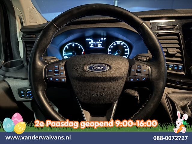 Stoere Ford Transit Custom L2H1 Euro6 met airconditioning, imperiaal en camera. Deze 131pk sterke Custom is uitgevoerd met navigatie, 2800kg trekhaak, LED, Apple Carplay, Android Auto, cruisecontrol, stoelverwarming, verwarmde voorruit, lederen bekleding, lichtmetalen velgen, parkeersensoren, bijrijdersbank en bluetooth telefoonvoorbereiding.