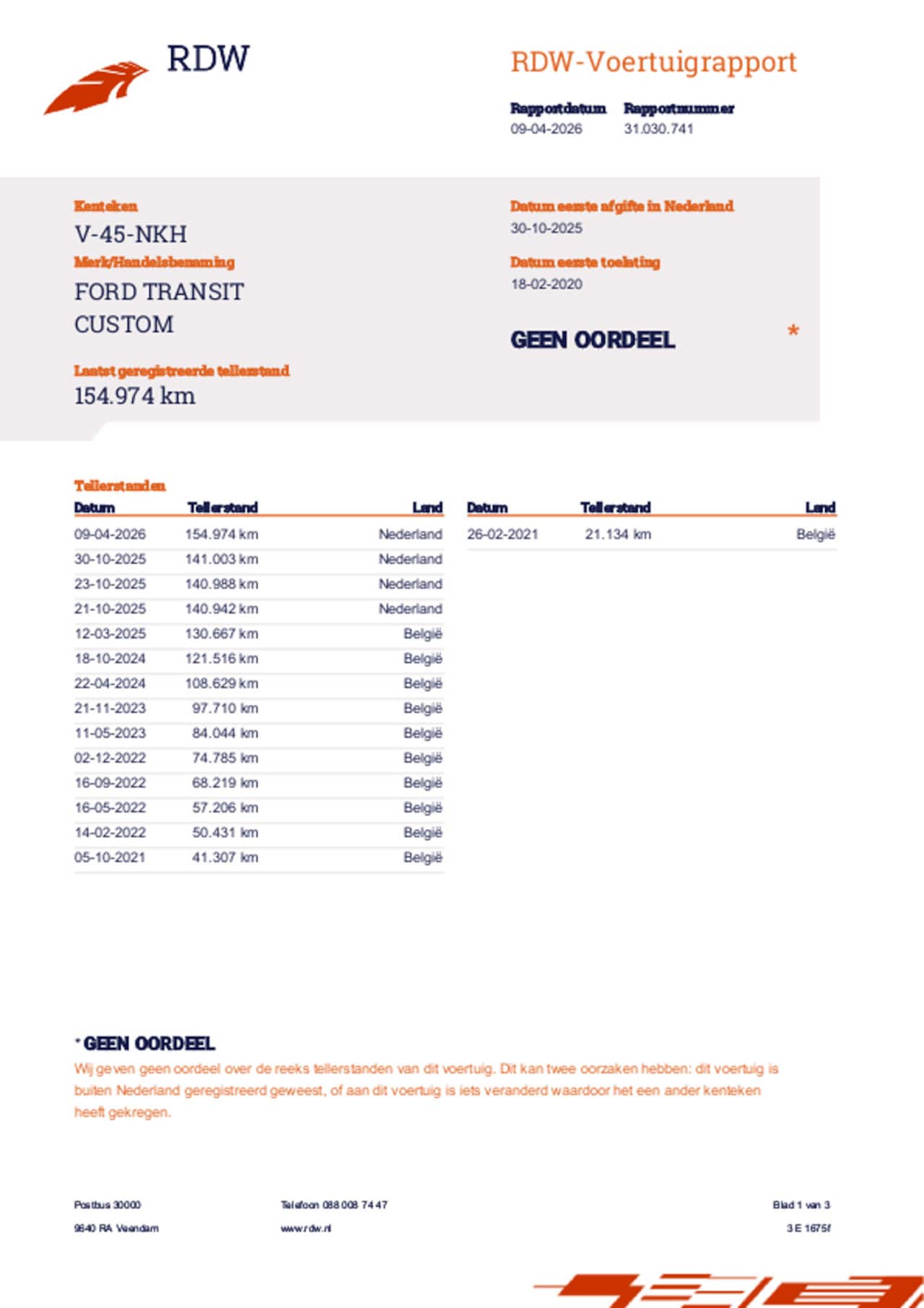 | Kilometerstand | 154.974 km |