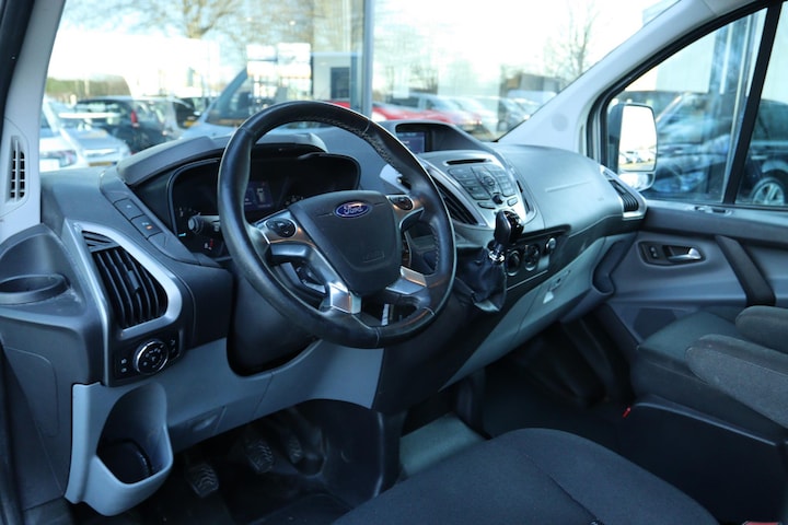 Origineel Nederlands geleverde Ford Transit Custom dubbel Cabine, NAP-kilometerverslag aanwezig. Boekjes aanwezig. Deze Ford Transit is o.a. voorzien van: Trekhaak, achteruitrijcamera, lichtmetalen velgen, cruise control, airco, navigatiesysteem full map, 5 zitplaatsen. Prijs is excl. BTW.