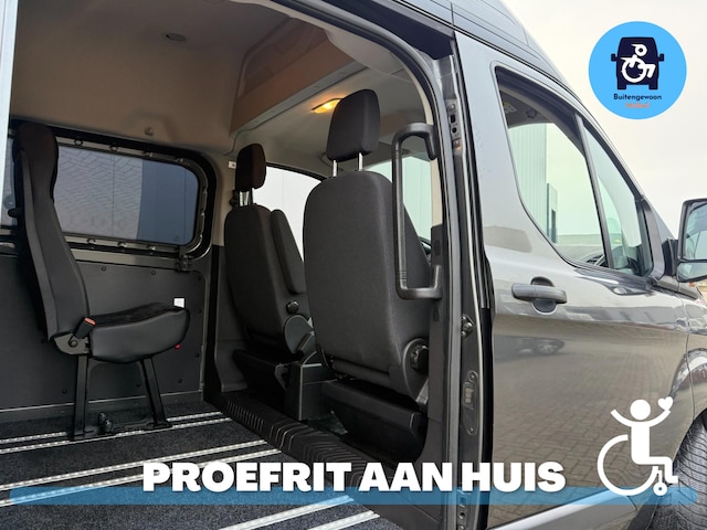 Deze zeer goed onderhouden Ford Transit Custom rolstoelbus uit 2017 (met airco) is speciaal uitgevoerd als meerijder.