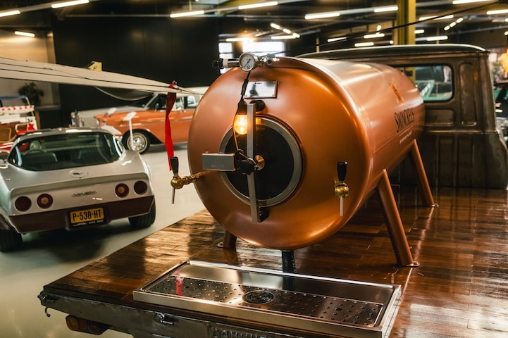 De tapinstallatie is professioneel aangelegd en ontworpen voor betrouwbaar en intensief gebruik. In de geïntegreerde koelinstallatie is ruimte voor zes compacte biervaten, die direct kunnen worden aangesloten. Via de CO2-aansluiting wordt een constante tapkwaliteit gegarandeerd. Achterop de koperen biertank bevinden zich twee taphendels, waarmee twee verschillende bieren gelijktijdig kunnen worden getapt.