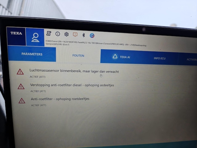Auto houdt in, vermoedelijk roetfilter te vol, zie storingscodes in foto's.