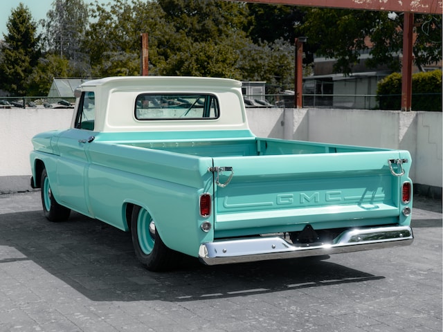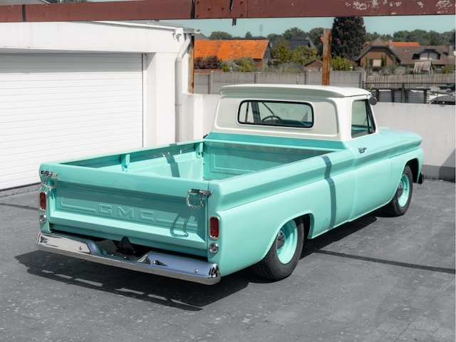 De hier aangeboden GMC is een keurig gerestaureerde Pick-up met een paar kleine modificaties en een snoepje om te zien. Origineel geleverd in 1966 in Nevada en een 10 jaar gelden naar Europa gehaald. De turquoise kleur staat ‘m geweldig en zowel het interieur, de laadbak als het chassis zijn in zeer goede staat. De GMC is voorzien van de zwaarste toen leverbare 6-cilinder met 4,1 liter inhoud en lekker veel koppel. Na restauratie is de Pick-up nauwelijks gebruikt en daardoor vrij van krassen, roest en deuken. De vorige (Belgische) eigenaar heeft de auto zelf uit Nevada gehaald en vervolgens minutieus gerestaureerd. Waar je ook kijkt, alles is met zorg gedaan en van zeer goede kwaliteit.