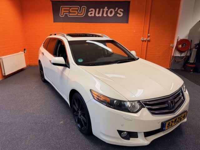 U rijdt gemakkelijk, comfortabel en zonder zorgen met deze Honda Accord Tourer. Deze auto is uitgerust met een viercilinder motor en een automatische transmissie. Van binnen is deze Honda Accord Tourer mooi uitgevoerd met een classy lederen interieur. Lekker hoor, die verwarmbare voorstoelen. Helemaal op koude dagen. Laat de zon maar schijnen door het elektrisch bediende glazen panoramadak. Met een druk op de knop gaat de elektrische achterklep open. Met de krachtige xenonverlichting heeft u optimaal zicht in het donker. Bij de rijke uitrusting horen ook 18 inch lichtmetalen velgen en warmtewerend glas.