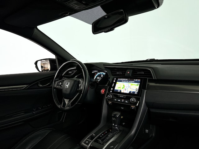 Strak inparkeren wordt een fluitje van een cent door de achteruitrijcamera. Als u de adaptive cruise control inschakelt, regelt de auto zelf de snelheid en de afstand tot de auto voor u. Het complete geluidsspectrum van de hi-fi krijgt een extra boost door het high performance audiosysteem. De snelste of zuinigste weg? Het in dashboard opgenomen navigatiesysteem aan boord wijst de juiste weg! Omdat u nu eenmaal niet overal ogen heeft, is deze Honda Civic voorzien van een achteropkomend verkeer waarschuwing die registreert wanneer de afstand tot uw achterligger te krap is. Ook electronic climate control, schakelpaddles aan het stuur, draadloos opladen, DAB ontvangst, regensensor en keyless entry horen tot de voorzieningen op deze auto.