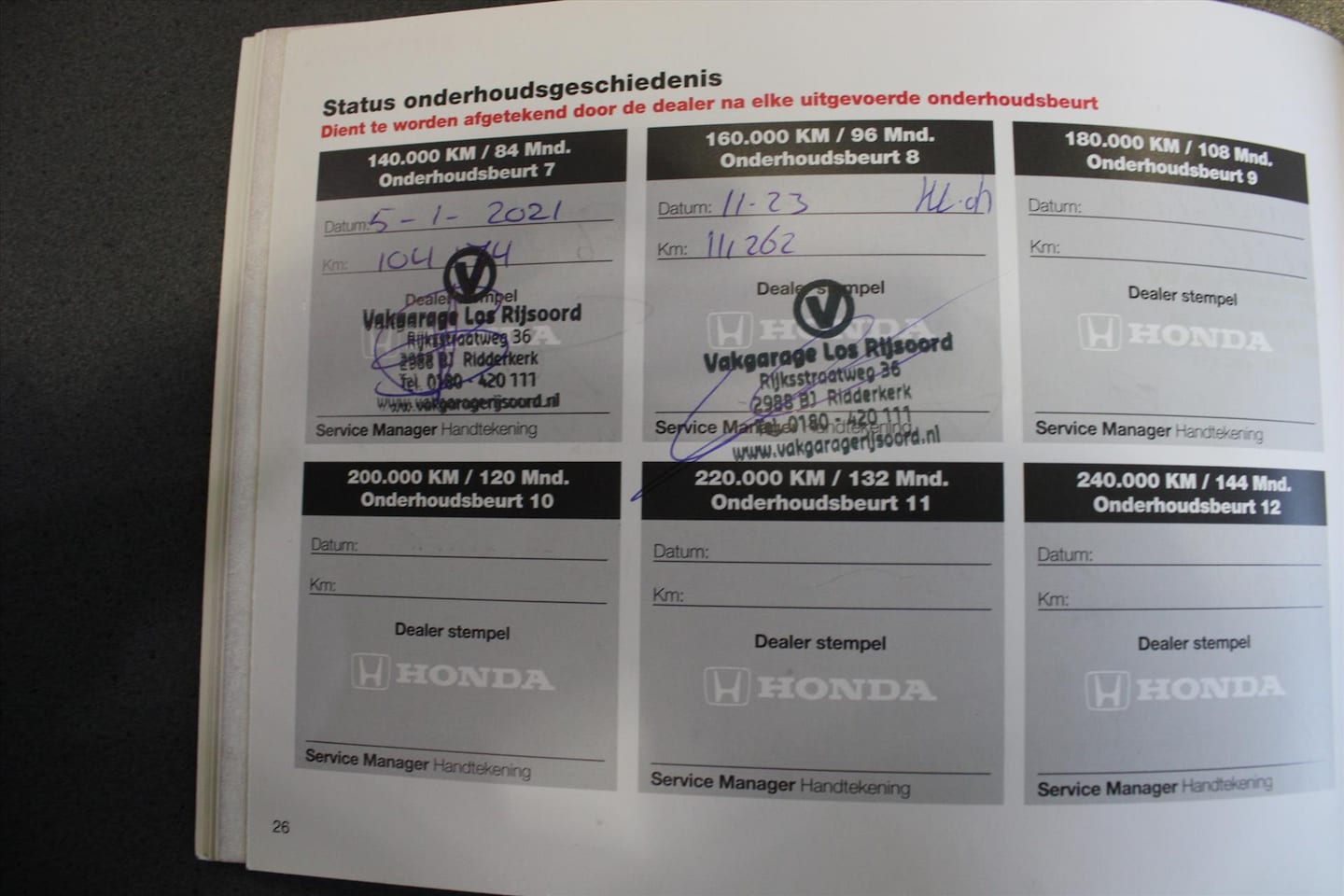 | APK | Bij aflevering |