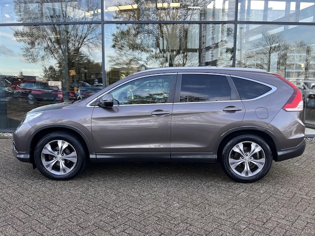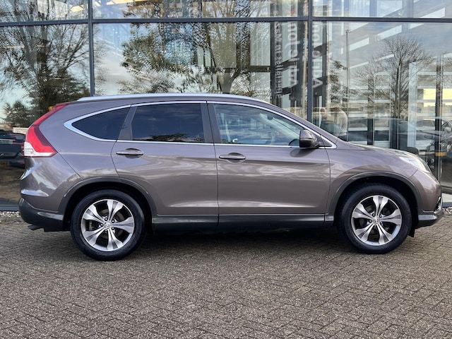 De Honda CR-V is gebouwd met hoogwaardige techniek en maakt het rijden van lange ritten, maar ook korte stukjes, tot een feestje. In deze auto vindt u een benzinemotor en een handgeschakelde zesversnellingsbak. Ze zeggen weleens dat stijlvol en handig niet gauw samengaan. In dit geval wel: kijk maar naar het lederen interieur en de elektrisch bedienbare achterklep. Tijdens koude winterdagen verjaagt uw stoelverwarming de kou en maakt het rijden heerlijk comfortabel. Het glazen panoramadak biedt u een breed zicht op de omgeving. Xenonverlichting staat borg voor helderwit licht en een krachtige lichtbundel. Bij de rijke uitrusting horen ook 18 inch lichtmetalen velgen, trailer assistent, extra getint glas, verstelbare lendensteunen en snelheidsafhankelijke stuurbekrachtiging.