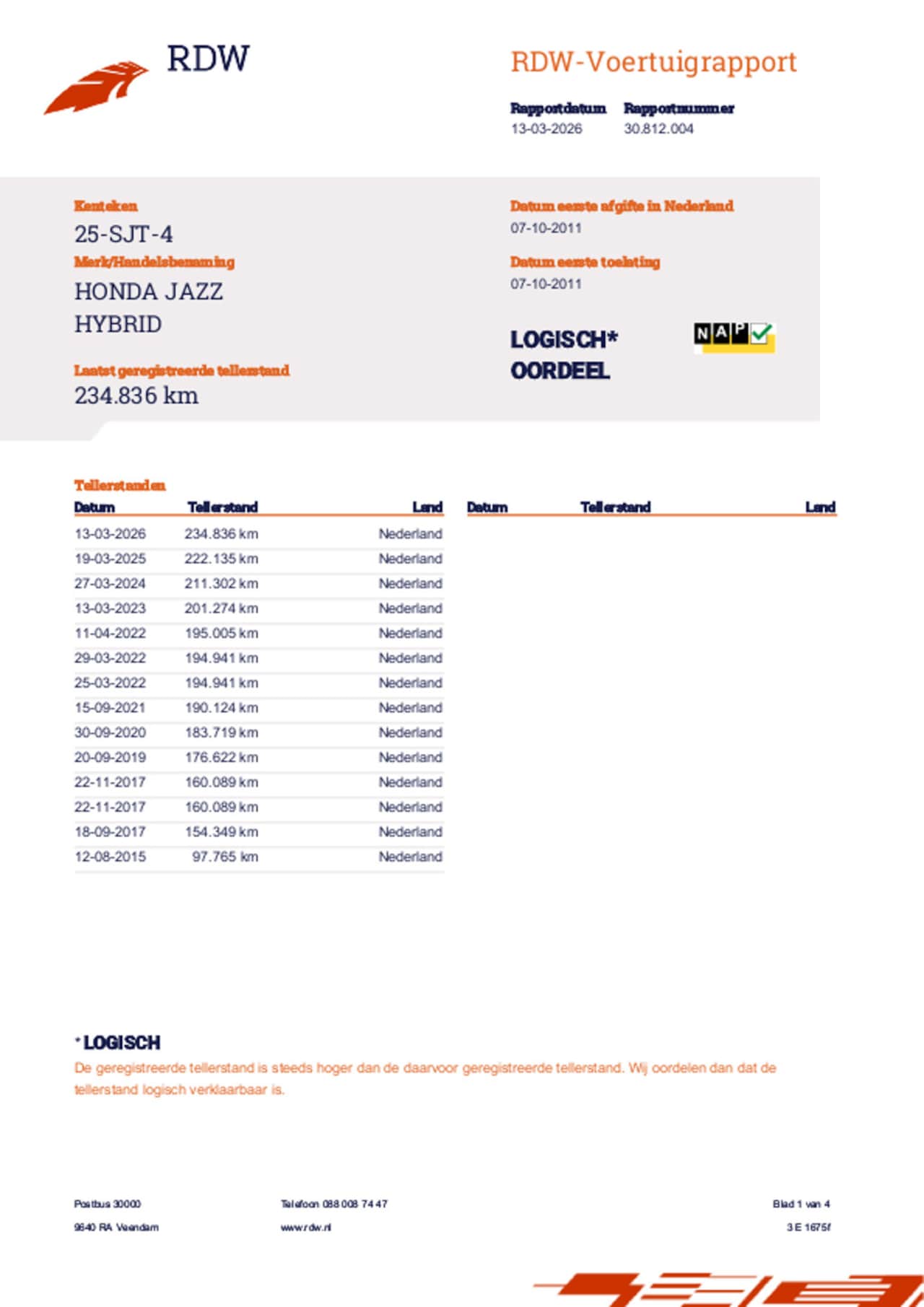 | Kilometerstand | 234.836 km |