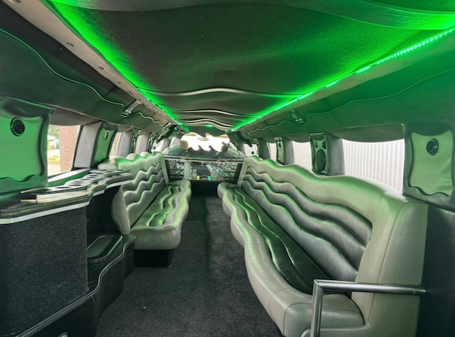 Interieur voorzien van luxe faciliteiten: bar / minibar of barkoeling / drankvoorziening, sfeerverlichting, mogelijk LED/ neon verlichting, en entertainment (opties als TV/DVD/ muziek/surround-sound) bij veel H2-limousines.