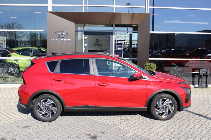 Zijn dynamische uiterlijk maakt al direct duidelijk wat voor rijervaring u van deze Hyundai BAYON mag verwachten: pure sportiviteit. Op de teller van deze auto staat slechts 5000 kilometer. Met zijn benzinemotor en automatische transmissie is dit een prima auto voor nog vele kilometers. Deze Hyundai BAYON heeft verwarmbare voorstoelen, voor zowel bestuurder als bijrijder. Natuurlijk kunt u zonder. Maar waarom? Lekker toch, zo'n verwarmd stuurwiel? Natuurlijk behoren 16 inch lichtmetalen velgen, LED koplampen, extra getint glas, in delen neerklapbare achterbank en LED-achterlichten ook tot de uitrusting van deze complete auto. Het digitale dashboard vertelt u onderweg alles dat bijdraagt aan een veilige, efficiënte rit. De hoogwaardige achteruitrijcamera en het display met hoge resolutie zorgen dat helemaal niets u meer ontgaat van wat er achter de auto gebeurt. Adaptive cruise control houdt de ingestelde snelheid vast en houdt automatisch afstand tot uw voorligger. Connected Services zorgen ervoor dat de belangrijkste functies en data van de auto altijd en overal te checken zijn. Gewoon via de app op de smartphone. Soms wil je goed geluid kunnen voelen! Het high performance audiosysteem bedient u op uw wenken. Deze Hyundai is voorzien van dashboard met spraakbediening, full map navigatiesysteem, kruisend verkeer detectie, electronic climate control, draadloos opladen en DAB ontvangst. In deze auto zijn verschillende technologieën aanwezig die voor u het verkeer en de omgeving in de gaten houden en die desnoods ook kunnen remmen of bijsturen. Dat de auto steeds meer taken van de bestuurder overneemt, merkt u bijvoorbeeld aan het systeem voor verkeersbord-detectie in deze auto. Mooi binnen de lijnen van de rijstrook blijven? Het Lane-keeping systeem helpt altijd een handje. De actieve dodehoekdetectie helpt ongelukken te voorkomen. Met voorzieningen als forward collision warning system, hill hold functie, vermoeidheidsherkenning, autonoom remsysteem en bandenspanningcontrolesysteem, bent u altijd veilig onderweg. Meer weten? Onze verkoper maakt graag een afspraak om u alles te laten zien!