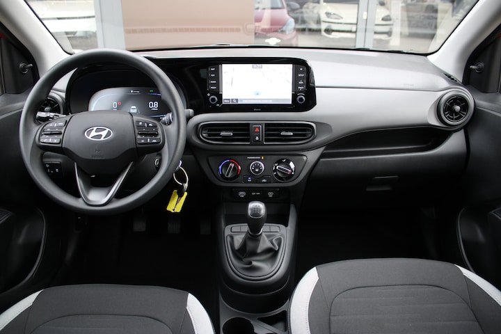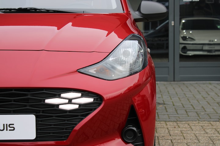 Het doordachte concept van de Hyundai i10 staat garant voor ruimte en rijcomfort. Het gaat hier om een nieuwe auto, die uit voorraad leverbaar is. Deze Hyundai is voorzien van een pittige benzinemotor en een handgeschakelde vijfversnellingsbak. Tot de uitrusting behoren ook LED-dagrijverlichting, dakspoiler en in delen neerklapbare achterbank. De hoogwaardige achteruitrijcamera en het display met hoge resolutie zorgen dat helemaal niets u meer ontgaat van wat er achter de auto gebeurt. Had u de auto nou wel afgesloten? Met Connected Services checkt u het overal en altijd. De bediening van het audiosysteem en het full map navigatiesysteem gebeurt met knoppen op het stuur en als u wilt zelfs met uw stem. Ook op de korte stukken is de cruise control een uitkomst. Kijk maar bij de benzinepomp! En natuurlijk is er ook gedacht aan airconditioning. Extra opties op deze auto zijn: centrale deurvergrendeling met afstandsbediening, boordcomputer en verstelbaar stuur. Zoals u mag verwachten van deze Hyundai i10 is hij uitgerust met een reeks aan actieve veiligheidssystemen. De actuele snelheidslimiet, een inhaalverbod en andere verkeersborden. De verkeersborddetectie ondersteunt u tijdens elke rit. Met het Lane-keeping systeem komt u nooit per ongeluk buiten de rijstrook. Onbedoeld bumperkleven is er niet bij, dankzij de forward collision warning. Die waarschuwt direct als een botsrisico met uw voorligger dreigt. In deze Hyundai vinden we verder een hill hold functie, autonoom remsysteem en bandenspanningcontrolesysteem. We kunnen ons voorstellen dat u deze auto wilt bekijken. We laten de auto graag aan u zien, dan vertellen we u meteen welke financieringsvormen we u eventueel kunnen bieden.