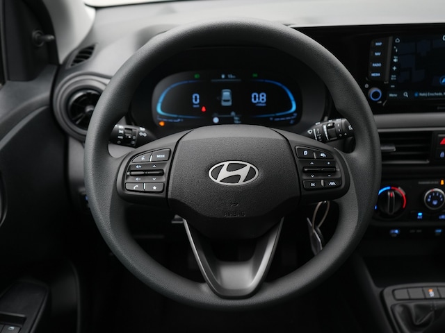 Zoals je mag verwachten van deze Hyundai i10 is hij uitgerust met een reeks aan actieve veiligheidssystemen. Onbedoeld buiten de rijstrook raken wordt voorkomen door het Lane-keeping systeem. Op een kop-staartbotsing zit niemand te wachten. Daarom is de forward collision warning onderweg constant alert en berekent via een sensor de veilige afstand tot voorliggers. Verder is deze auto uitgerust met hill hold functie, autonoom remsysteem en bandenspanningcontrolesysteem.