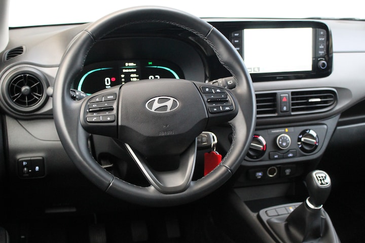 Z'n bescheiden formaat zorgt ervoor dat-ie maar weinig nodig heeft om indruk te maken, deze Hyundai i10. Krap in wegenbelasting, verbruik en onderhoudskosten, maar royaal in rijplezier! Deze auto is bijna nieuw, ondanks dat hij uit 2023 komt; hij heeft slechts 15261 kilometer afgelegd. Met zijn benzinemotor en handgeschakelde vijfversnellingsbak is dit een prima auto voor nog vele kilometers. In deze Hyundai profiteert u onder andere ook van: LED-dagrijverlichting en in delen neerklapbare achterbank. De achteruitrijcamera levert eersteklas parkeerservice. U weet precies hoeveel ruimte u nog heeft, in beeld en geluid. Dankzij Connected Services weet u precies waar uw auto geparkeerd staat. Ook andere functies, zoals bandenspanning en brandstofniveau, zijn via de app altijd onder handbereik. Het navigatiesysteem brengt u vlot naar uw bestemming, terwijl u luistert naar het glasheldere geluid van het audiosysteem met DAB-radio. Ook fijn als u op de voorgeschreven snelheid wilt blijven: de cruise control. Met de aanwezige airconditioning bepaalt u zelf het binnenklimaat. De uitrusting van deze auto is met dashboard met spraakbediening, centrale deurvergrendeling met afstandsbediening, boordcomputer en verstelbaar stuur behoorlijk compleet. Deze auto is voorzien van innovatieve systemen die u onderweg begeleiden en beschermen. Dat de auto steeds meer taken van de bestuurder overneemt, merkt u bijvoorbeeld aan het systeem voor verkeersbord-detectie in deze Hyundai. Mooi binnen de lijnen van de rijstrook blijven? Het Lane-keeping systeem helpt altijd een handje. Onbedoeld bumperkleven is er niet bij, dankzij de forward collision warning. Die waarschuwt direct als een botsrisico met uw voorligger dreigt. Bovenop deze veiligheidsfeatures heeft deze Hyundai bovendien hill hold functie, vermoeidheidsherkenning, autonoom remsysteem en bandenspanningcontrolesysteem. Indien u interesse heeft in deze Hyundai, zetten we hem graag klaar voor een proefrit. We horen graag van u, mailt of belt u ons meteen?