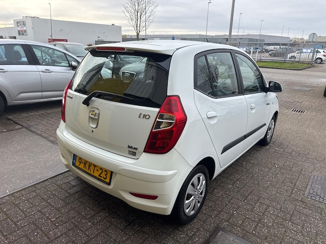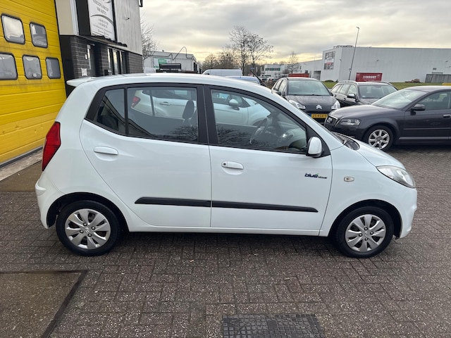 Hyundai i10 uit 2013, compacte en praktische auto voor dagelijks gebruik. De auto heeft normale gebruikerssporen die passen bij de leeftijd en ziet er netjes uit. Linksvoor zit een klein deukje.