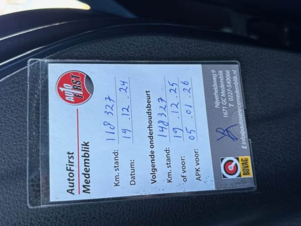 | APK | Bij aflevering |