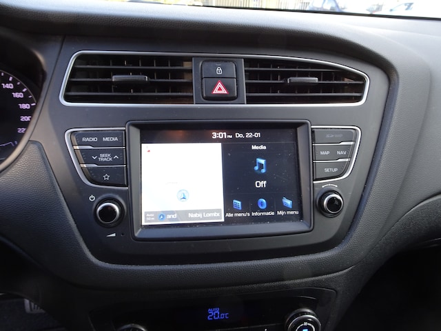 Met behulp van de achteruitrijcamera kunt u zo strak inparkeren als u maar wilt! Intelligente spraakbediening herkent uw commando's en voert opdrachten snel en soepel uit. Het navigatiesysteem zorgt ervoor dat u snel en ontspannen op uw bestemming aankomt. Ook over uw schouder ziet u onderweg niet alles wat er aan de achterzijde gebeurt. Daarom heeft deze Hyundai i20 een achteropkomend verkeer waarschuwing. Ook is de auto voorzien van automatische airconditioning. Deze Hyundai is voorzien van DAB ontvangst, regensensor, cruise control, automatisch dimmende binnenspiegel, lederen stuur en centrale deurvergrendeling met afstandsbediening.