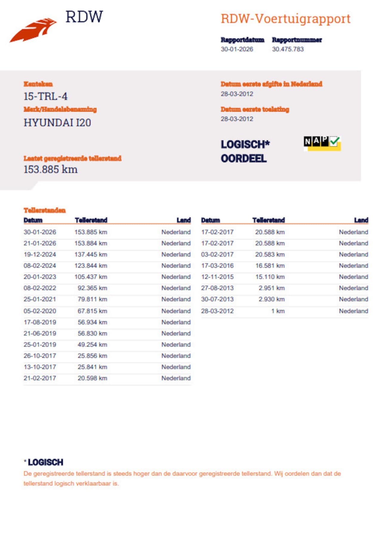 | Kilometerstand | 153.885 km |
