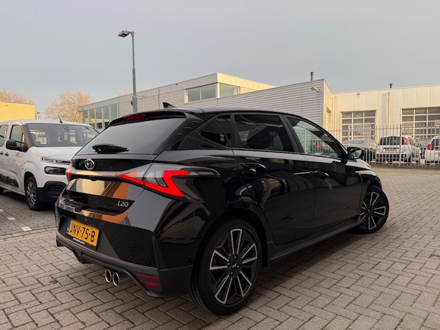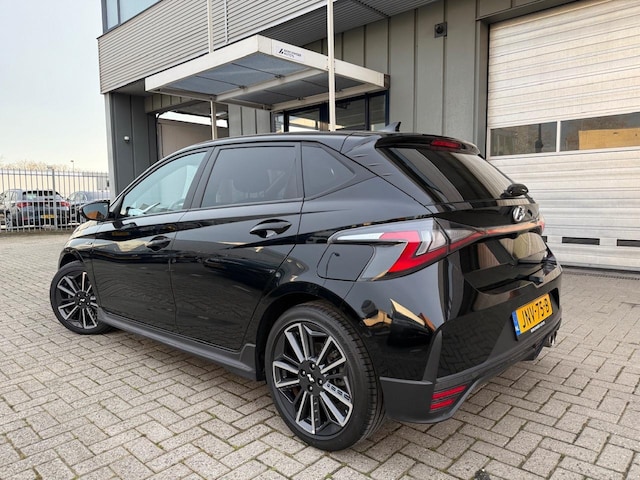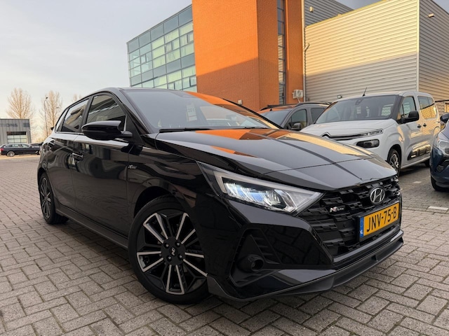 Hyundai i20 N-Line 1.0 Benzine + Elektrisch Automaat 88 kW Black Edition (09/2021). Een sportieve en moderne uitvoering met luxe uitstraling en hybride aandrijving. Dankzij de combinatie van benzine en elektrische ondersteuning rijdt deze i20 soepel, stil en efficiënt. De N-Line uitvoering zorgt voor een sportief design en een extra complete uitstraling.