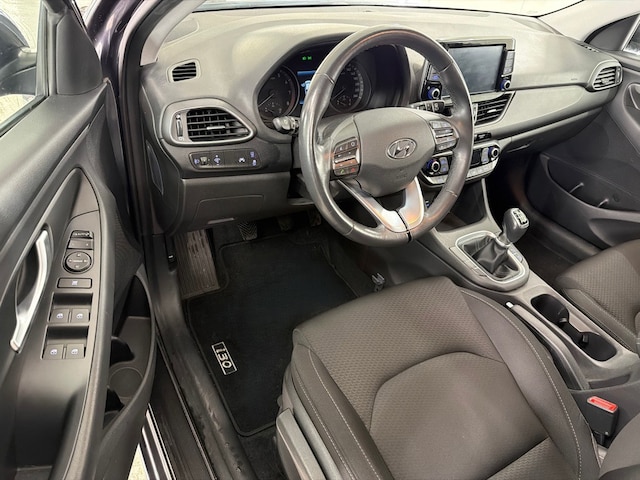 Binnenin is het interieur fris en netjes. De stoelen zitten comfortabel en zijn in hoogte verstelbaar, terwijl het leren stuur en de leren versnellingspook zorgen voor een extra luxe gevoel. Zowel voor als achter geniet je van elektrische ramen en er is een handige armsteun aanwezig voor extra comfort. Dankzij de in delen neerklapbare achterbank creëer je bovendien eenvoudig extra bagageruimte wanneer dat nodig is. Deze Hyundai I30 is dus niet alleen stijlvol, maar ook verrassend praktisch.