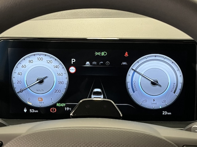Verken de digitale wereld van mobiliteit waar het digitale dashboard alles biedt wat jij nodig hebt om jouw reis comfortabel te maken. Zodra je naar de 'R' schakelt, gaat de achteruitrijcamera in werking en heb je een perfect zicht op alles wat zich achter de auto afspeelt. Adaptive cruise control is een comfortabele en veilige optie. Het systeem reguleert de snelheid en houdt automatisch afstand tot jouw voorligger. Locatie, motorconditie, storingen... via Connected Services krijg je alle vitale info over de auto door. Ook handig bij pech! Onderweg kun jij veilig genieten van het audiosysteem met DAB-radio en het navigatiesysteem. Want in deze Hyundai bedien je ze vanaf het stuurwiel of met jouw stem. Deze auto is voorzien van automatische airconditioning, keyless entry en verstelbaar stuur.