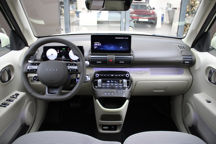 U zult het zien: overstappen naar elektrisch rijden kost u geen enkele moeite als u kiest voor deze Hyundai INSTER. Nooit meer naar de pomp! De elektromotor opladen en rijden maar! Deze auto uit 2025 heeft nauwelijks gereden, met een tellerstand van slechts 1498 kilometer. Een weldaad voor u en uw bijrijder: deze Hyundai INSTER heeft verwarmbare voorstoelen. Koude handen? Da's voorbij met het verwarmd stuurwiel. Pak aan! Verder is de Hyundai uitgerust met: schuif- en kanteldak, 17 inch lichtmetalen velgen, LED koplampen, extra getint glas, in delen neerklapbare achterbank en LED-achterlichten. Alle benodigde informatie helder in beeld: het digitale dashboard is een geweldige rijhulp. De functie van de 360 graden camera in deze auto is om u een totaaloverzicht van de omgeving te geven, ongeacht hoe smal de straat of parkeerplek is. Adaptive cruise control is een comfortabele en veilige optie. Het systeem reguleert de snelheid en houdt automatisch afstand tot uw voorligger. Dankzij Connected Services weet u precies waar uw auto geparkeerd staat. Ook andere functies, zoals bandenspanning en brandstofniveau, zijn via de app altijd onder handbereik. Uw veiligheid op de weg wordt verhoogd door het audiosysteem met DAB-ontvangst en het navigatiesysteem te bedienen vanaf het stuur of met spraakbediening, zodat uw handen veilig op het stuur blijven en uw ogen gericht zijn op de weg. En deze auto heeft ook automatische airconditioning, draadloos opladen, regensensor, keyless entry, automatisch dimmende binnenspiegel en bagage afdekhoes als standaard uitrusting. Aan boord van deze Hyundai houden verschillende geavanceerde systemen voor u de weg in de gaten. Ze waarschuwen u voor noodsituaties en kunnen in een aantal gevallen ook zelf ingrijpen. Indien u onbedoeld de rijstrook lijkt te verlaten, reageert het Lane-keeping systeem meteen en corrigeert. De actieve dodehoekdetectie helpt ongelukken te voorkomen. Vermoeid achter het stuur zitten vergroot de kans op een ongeval. Vermoeidheidsherkenning waarschuwt tijdig als u aan een rustpauze toe bent. In deze Hyundai vinden we verder een hill hold functie, autonoom remsysteem en bandenspanningcontrolesysteem. U bent geïnteresseerd om elektrisch te rijden? Neem dan nu contact met ons op.