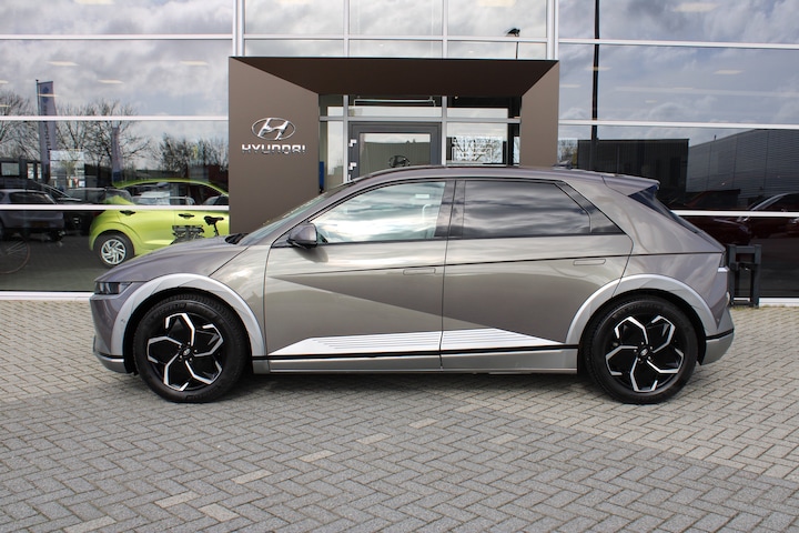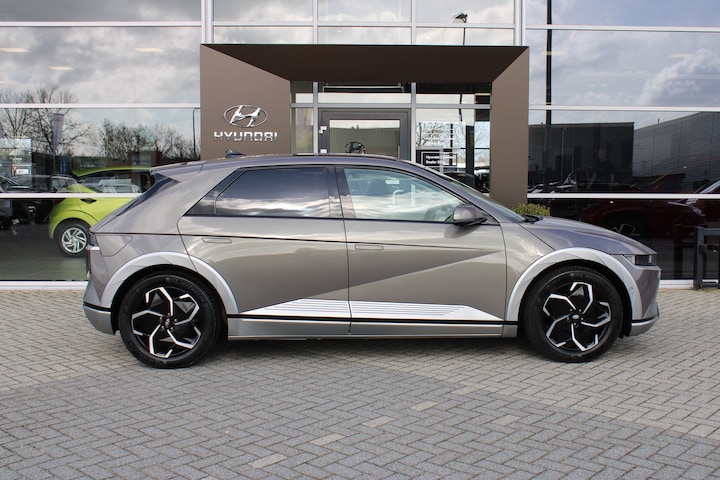 Kijk naar de zelfbewuste vormgeving. Ontdek de vernieuwende technologie aan boord. De Hyundai IONIQ 5 is een unieke elektrische auto. Nooit meer naar de pomp! De elektromotor opladen en rijden maar! Een krachtige motor geeft deze auto zijn sportieve prestaties. Met zijn lederen bekleding is deze auto comfortabel en stijlvol. Ondanks koele temperaturen buiten, blijft u binnen warm met de stoelverwarming met massagefunctie en verwarmbare stuur en achterbank. U past de stoelen moeiteloos aan, ze zijn elektrisch in te stellen en hebben bovendien een geheugen. Een handige voorziening op deze auto is de elektrische achterklep die u op afstand kunt openen. De matrix LED-verlichting is het allernieuwste op het gebied van autoverlichting. Altijd maximaal licht op de weg, zonder tegenliggers te hinderen! In deze auto profiteert u onder andere ook van: 19 inch lichtmetalen velgen, extra getint glas, in delen neerklapbare achterbank, LED-achterlichten en verstelbare lendensteunen. Het digitale dashboard geeft een nauwkeurig en makkelijk overzicht van alle belangrijke functies. De vier camera's genereren samen een 360 graden beeld rond de auto, zodat u een volledig overzicht hebt van wat er rondom uw auto gebeurt. Met adaptive cruise control houdt deze auto automatisch afstand tot uw voorligger. Voor een krachtige en natuurlijke geluidsweergave zorgt het high performance audiosysteem. Onderweg uw smartphone opladen zonder gedoe met stekkers en kabels? Dat kan, met de draadloze oplaadmogelijkheid voor telefoons. Deze auto is voorzien van dashboard met spraakbediening, full map navigatiesysteem, kruisend verkeer detectie, automatische airconditioning, DAB ontvangst en regensensor. Het rijden met deze Hyundai wordt nog meer ontspannen dankzij de innovatieve technieken die onderweg over uw veiligheid waken. U verliest de weg geen seconde uit het oog. De dashboardinfo wordt in uw zichtveld geprojecteerd door de head-up display. Onderweg zorgt verkeersborddetectie ervoor dat u geen waarschuwingsbord mist. Het Lane-keeping systeem zorgt voor een automatisch constante positie binnen de rijstrook. Afdwalen is uitgesloten. Bovenop deze veiligheidsfeatures heeft deze Hyundai bovendien dodehoekdetector detectiesysteem, forward collision warning system, hill hold functie, vermoeidheidsherkenning, autonoom remsysteem en bandenspanningcontrolesysteem. The future is now, rij elektrisch! Maak een afspraak voor een proefrit.
