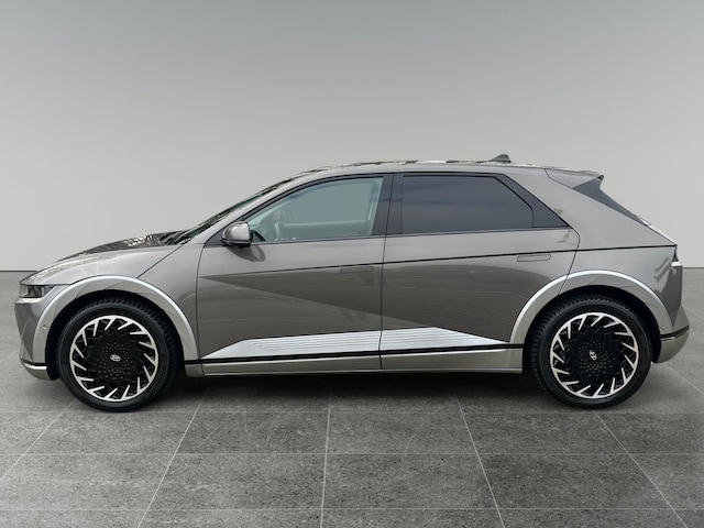 Kijk naar de zelfbewuste vormgeving. Ontdek de vernieuwende technologie aan boord. De Hyundai IONIQ 5 is een unieke elektrische auto. De batterijtechniek heeft de afgelopen jaren enorme vooruitgang geboekt, zodat u met deze auto op een volle acculading echt ver kunt komen. En als u de auto 's avonds aan de lader koppelt, is hij de volgende dag weer helemaal vol. Het lederen interieur is een stijlvolle extra van deze Hyundai IONIQ 5. Zit u goed? De stoelen zijn eenvoudig instelbaar dankzij de elektrische bediening met geheugen. Voorzien van zowel stoelverwarming, verwarmbare achterbank alsook een verwarmbaar stuur, zorgt dit voertuig voor uitstekend comfort tijdens koude dagen. Met een druk op de knop gaat de elektrische achterklep open. Ook 20 inch lichtmetalen velgen, Full LED koplampen, extra getint glas, in delen neerklapbare achterbank, LED-achterlichten en verstelbare lendensteunen zijn aan boord.