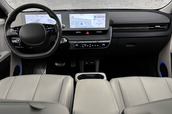 Het digitale dashboard zorgt voor een super functionele display van reisinformatie. Het inventieve 360 graden camerasysteem op deze auto heeft de functie om u assistentie te bieden in nauwe ruimtes en straten, waar het achteruit rijden vaak een uitdaging is. Adaptive cruise control houdt de ingestelde snelheid vast en houdt afstand tot het voertuig voor u. De high-end technologie van het high performance audiosysteem staat garant voor geluid van het hoogste niveau. Als bijzondere veiligheidsoptie heeft deze Hyundai IONIQ 5 kruisend verkeer detectie, die waarschuwt als een botsing dreigt met tegemoetkomend verkeer. Ook dashboard met spraakbediening, full map navigatiesysteem, automatische airconditioning, sportstuur met schakelpaddels, regensensor en keyless entry zijn aan boord.