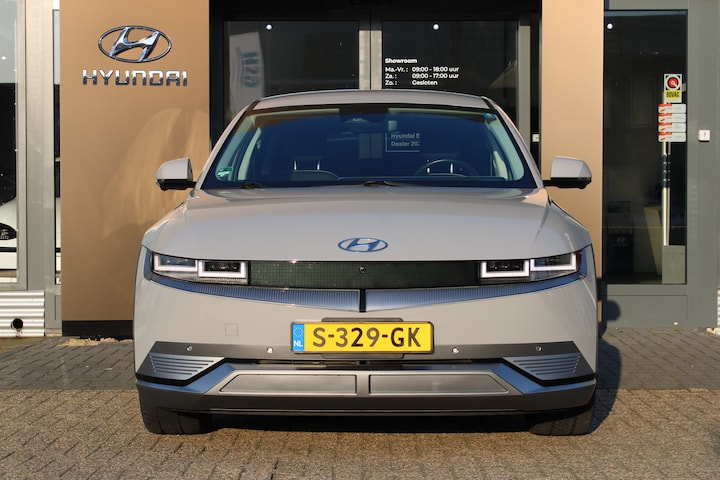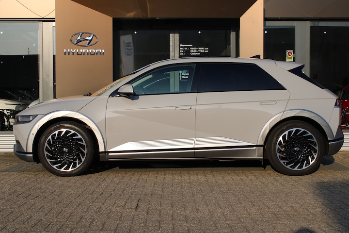 Kijk naar de onvergelijkbare vormgeving. De Hyundai IONIQ 5 is een elektrische auto die zijn bijzondere karakter niet voor de buitenwereld verbergt. Een elektrische auto is echt niet meer alleen voor korte ritjes. Het rijbereik van deze auto biedt voldoende ruimte voor uw dagelijkse ritten. Daardoor kan het opladen vaak 's nachts gebeuren. Een krachtige motor geeft deze auto zijn sportieve prestaties. Het interieur is luxe uitgevoerd met leren bekleding. Naast het verwarmbare stuurwiel en de stoelverwarming, benadrukt de massagefunctie op de voorstoelen dat we hier te maken hebben met een regelrechte verwenauto. U past de stoelen moeiteloos aan, ze zijn elektrisch in te stellen en hebben bovendien een geheugen. De bagageruimte is toegankelijk via een comfortverhogende elektrische achterklep. Perfect zicht bij nacht en slecht weer? Dat leveren de koplampen met matrix LED-verlichting. Tot de uitrusting behoren ook 20 inch lichtmetalen velgen, extra getint glas, in delen neerklapbare achterbank, LED-achterlichten en verstelbare lendensteunen. Het digitale dashboard ondersteunt u voortdurend met actuele, bruikbare informatie. Het gebruik van de 360 graden camera op deze auto vergemakkelijkt het parkeren aanzienlijk, vooral in krappe ruimtes. Met adaptive cruise control houdt de auto zelfstandig afstand tot uw voorligger. Een veiligheidsverhogende optie waarmee u comfortabel onderweg bent. Net als een smartphone of een slimme speaker kunt u deze auto bedienen met stemcommando's. De auto is voorzien van een trekhaak en is een uitstekende caravantrekker. Natuurlijk behoren premium audiosysteem, full map navigatiesysteem, kruisend verkeer detectie, automatische airconditioning, draadloos opladen en DAB ontvangst ook tot de uitrusting van deze complete auto. De intelligente veiligheidssystemen in deze auto waken continu over uw veiligheid. Eyes on the road! Dat kan iedere seconde, dankzij de head-up display, die informatie projecteert op de voorruit. Bij de veiligheidssystemen van deze auto hoort ook de verkeersbord-detectie. Die leest tijdens het rijden als het ware met u mee en attendeert u op de significante verkeersborden langs en boven de weg. Het Lane-keeping systeem registreert permanent of u binnen de lijnen van de rijstrook blijft; dwaalt u onbedoeld af, dan waarschuwt het systeem en corrigeert de koers. De veiligheid van deze auto wordt verder verhoogd door dodehoekdetector detectiesysteem, forward collision warning system, hill hold functie, vermoeidheidsherkenning, autonoom remsysteem en bandenspanningcontrolesysteem. Dit is het moment om te switchen naar elektrisch rijden. Gaat u mee? Bel nu voor een afspraak en maak een proefrit!