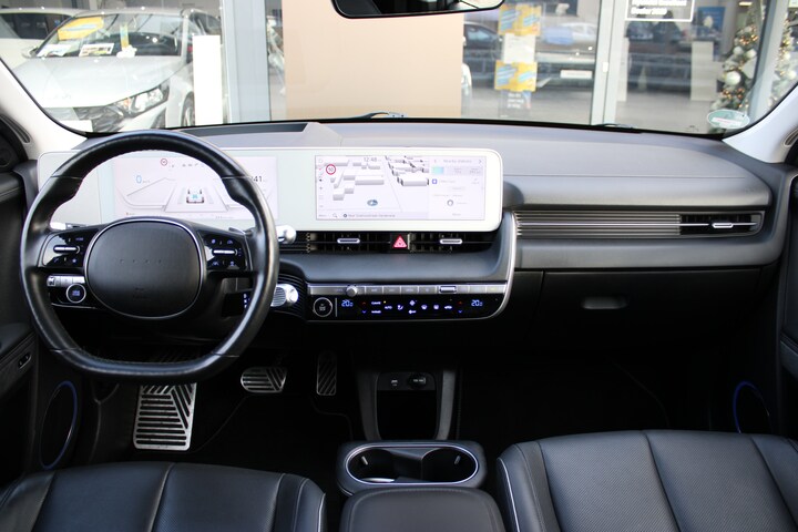 Hyundai onderscheidt zich door topklasse tegen een wel heel schappelijke prijs. Met als drijfveer: New Thinking. New Possibilities. De actieradius van deze auto is ruim voldoende voor de meeste dagelijkse ritten en de laadtijd zal u nog verbazen. Een krachtige motor geeft deze auto zijn sportieve prestaties. Als we het over extra cachet hebben, moeten we zeker het lederen interieur noemen. Het maakt niet uit hoe koud het buiten is; het verwarmbare stuurwiel en de verwarmbare voorstoelen inclusief massagefunctie verzekeren u van ongeëvenaard comfort. Zit u goed? De stoelen zijn eenvoudig instelbaar dankzij de elektrische bediening met geheugen. De achterklep opent automatisch met een druk op de knop. Handig als u met volle handen staat. De geavanceerde matrix LED-verlichting in de koplampen levert maximaal helder zicht en past zich subtiel aan zodra er een tegenligger komt. Zonder lichtkwaliteitsverlies! Ook is de auto voorzien van: 20 inch lichtmetalen velgen, extra getint glas, in delen neerklapbare achterbank, LED-achterlichten en verstelbare lendensteunen. Het digitale dashboard stelt u in staat uw cockpitinterface te personaliseren. Met de 360 graden camera, verzorgd door vier camera's, wordt rijden in drukke steden of het navigeren in nauwe ruimtes een koud kunstje. Met adaptive cruise control houdt de auto zelfstandig afstand tot uw voorligger. Een veiligheidsverhogende optie waarmee u comfortabel onderweg bent. Hoog, laag, midrange: het high performance audiosysteem is volledig afgestemd op de akoestiek in deze auto. Is uw smartphone geschikt voor snoerloos opladen? Dan zorgt de draadloze oplaadmogelijkheid voor telefoons weer voor een volle accu zonder snoeren en stekkers. En deze auto heeft ook dashboard met spraakbediening, full map navigatiesysteem, kruisend verkeer detectie, automatische airconditioning, DAB ontvangst en regensensor als standaard uitrusting. De intelligente veiligheidssystemen in deze auto waken continu over uw veiligheid. Ogen op de weg en toch alle dashboardinfo in beeld? Daar zorgt de head-up display voor! Dat de auto steeds meer taken van de bestuurder overneemt, merkt u bijvoorbeeld aan het systeem voor verkeersbord-detectie in deze auto. Met het Lane-keeping systeem gaat u nooit onbedoeld over de streep. Met voorzieningen als dodehoekdetector detectiesysteem, forward collision warning system, hill hold functie, vermoeidheidsherkenning, autonoom remsysteem en bandenspanningcontrolesysteem, bent u altijd veilig onderweg. Wanneer wilt u een proefrit maken? Neem contact op en we maken een afspraak voor een muisstille rit in deze elektrische droomauto!