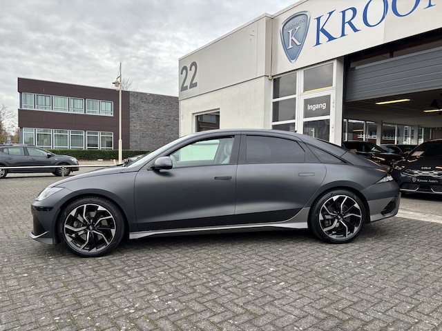 Bomvolle Hyundai Ioniq6 in super-de-luxe Lounge uitvoering met een 77.4 kWh Lithium-Ion accu met een WLTP actieradius van 545 km. Deze Ioniq6 is voorzien van de exclusieve Nocturne Gray matte lak, volledig lederen interieur met stuur- en stoelverwarming en stoelventilatie voor en achter. Wij bieden u deze Ioniq6 Lounge in opdracht van een klant aan. De meest in het oog springende opties van deze Ioniq6 zijn;