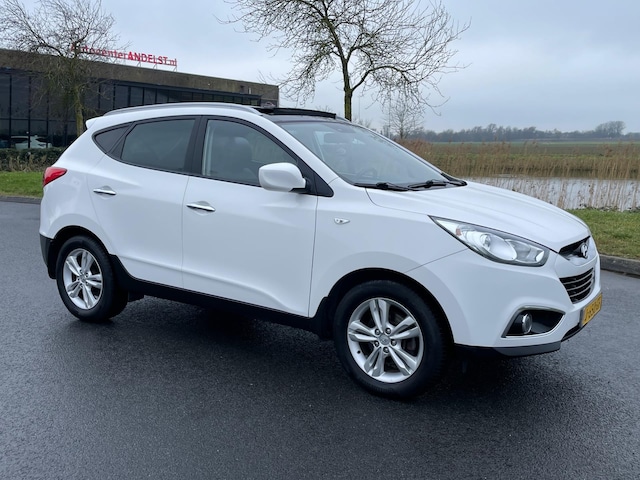Hoge witte en goed onderhouden Hyundai Ix35 2.0i 4WD Style. Deze Hyundai Ix35 is o.a. voorzien van de 'Leer-pakket'' (achterbank verwarmd, lederen bekleding en stoelverwarming voor). Verder is deze Hyundai Ix35 voorzien van achteruitrijcamera, boordcomputer, cruise control, dakrails, electronic climate control, elektrisch glazen panorama-dak, elektrische ramen voor en achter, extra getint glas, hill hold functie, lichmetalen velgen 17'', multifunctioneel lederen stuurwiel, multimedia-voorbereiding, navigatie full map, radio-CD/MP3 speler, etc.