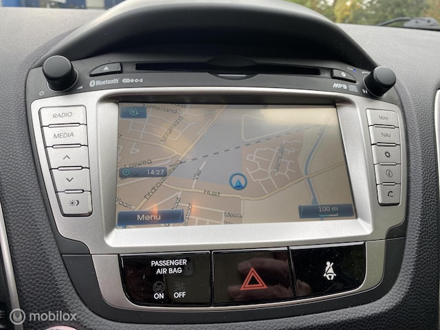 Het is een auto die er nog jaren tegenaan kan, deze Hyundai ix35 die 154019 kilometer op de teller heeft staan. Met zijn benzinemotor en automatische transmissie is dit een prima auto voor nog vele kilometers. Stelt u eisen aan stijl? Dan zal dit lederen interieur u bevallen. Of wilt u liever licht en ruimtelijk gevoel? Dan valt dit elektrisch bediend glazen panorama dak zeker bij u in de smaak. Weet u wat? U krijgt het met deze auto allebei! Stoelverwarming maakt deel uit van de rijke uitrusting van deze auto. Ook donker getint glas achter, in delen neerklapbare achterbank, treeplanken en verstelbare lendensteunen zijn aan boord.