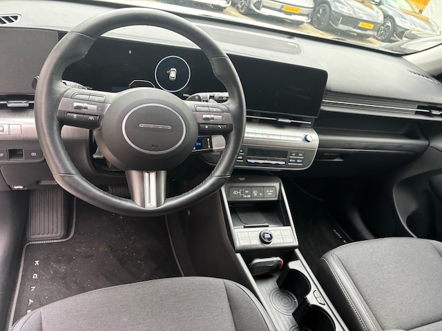 Hij biedt volop ruimte, deze Hyundai Kona Electric, en dankzij zijn elektrische aandrijving is er ook plenty vermogen voor een dynamische rijstijl. Deze auto is van het bouwjaar 2024 en heeft 9902 kilometer gelopen. Op een volle acculading kan deze auto de gebruikelijke dagelijkse ritten allemaal maken. Het opladen gaat eenvoudig aan een openbare laadpaal of aan uw eigen oplaadpunt thuis. Een krachtige motor geeft deze auto zijn sportieve prestaties. Behaaglijk onderweg zijn? Als bestuurder geniet u van de verwarmbare voorstoelen. Net als uw bijrijder! Met een druk op de knop gaat de elektrische achterklep open. Natuurlijk kunt u zonder. Maar waarom? Lekker toch, zo'n verwarmd stuurwiel? Bij de zeer complete uitrusting van deze auto behoren ook 17 inch lichtmetalen velgen, Full LED koplampen, geluidsisolerende ramen, in delen neerklapbare achterbank, LED-achterlichten en verstelbare lendensteunen. Overzicht, informatie en functionaliteit: dat biedt het digitale dashboard. Met een gerust hart achteruitrijden? Dat kan, dankzij de achteruitrijcamera. Met adaptive cruise control houdt deze auto automatisch afstand tot uw voorligger. Rijden-stilstaan, rijden-stilstaan. Niks is irritanter en vermoeiender dan filerijden. Daar heeft deze Hyundai Kona Electric een oplossing voor: de file assistent, die met radarmeting permanent het tempo aanpast op de voorligger. Zelfs als die stopt. Spraaksturing betekent dat u verschillende functies met uw stem kunt bedienen. Met connected drive services, navigatiesysteem, automatische airconditioning, DAB ontvangst, regensensor en keyless entry is deze Hyundai helemaal compleet. In de Hyundai Kona Electric heeft uw veiligheid en die van uw omgeving prioriteit. Ogen op de weg en toch alle dashboardinfo in beeld? Daar zorgt de head-up display voor! De actuele snelheidslimiet, een inhaalverbod en andere verkeersborden; de verkeersborddetectie ondersteunt u tijdens elke rit. Het Lane-keeping systeem zorgt voor een automatisch constante positie binnen de rijstrook. Afdwalen is uitgesloten. Dankzij veiligheidsvoorzieningen als hill hold functie, vermoeidheidsherkenning, autonoom remsysteem en bandenspanningcontrolesysteem, bent u steeds veilig onderweg. Elektrisch rijden ervaren? Neem contact op en maak een afspraak voor een proefrit.