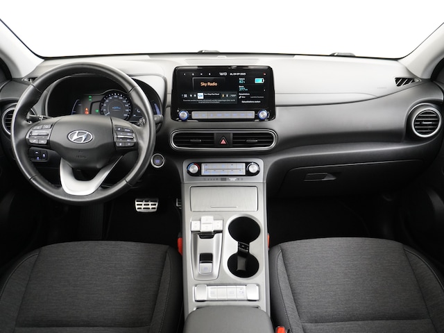 Bent u benieuwd hoe een elektrische auto rijdt? Dan is deze Hyundai Kona een ideale kandidaat voor een kennismaking. Gas geven is er met de elektromotor niet meer bij. Stil snelheid maken wel! Een krachtige motor geeft deze auto zijn sportieve prestaties. Neem plaats achter het stuur en ervaar de weldaad van de comfortstoelen. Bij de uitrusting van deze Hyundai horen onder meer 17 inch lichtmetalen velgen, LED-dagrijverlichting, getint glas, in delen neerklapbare achterbank, verstelbare lendensteunen en snelheidsafhankelijke stuurbekrachtiging.