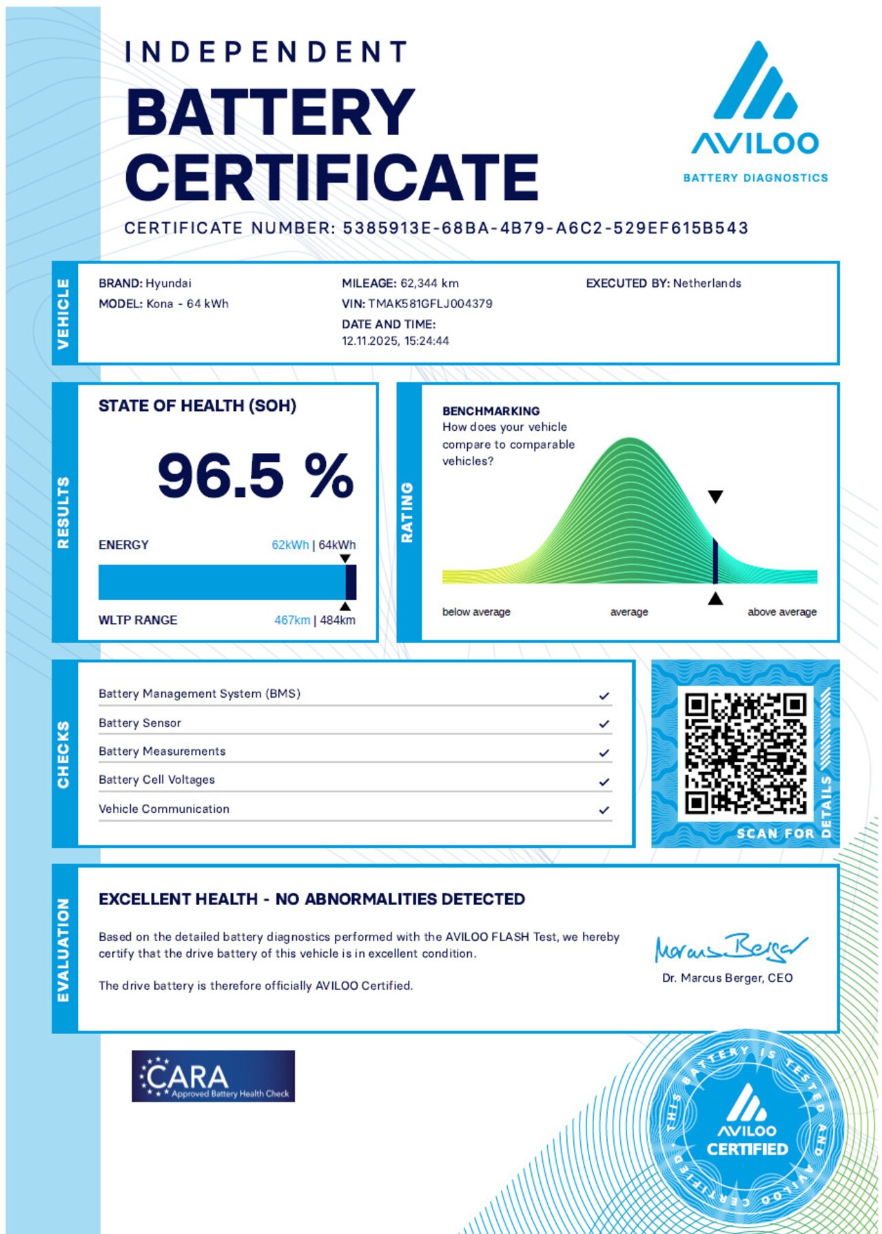 EV Comfort 39 kWh AVILOO Accutest, SOH 98%