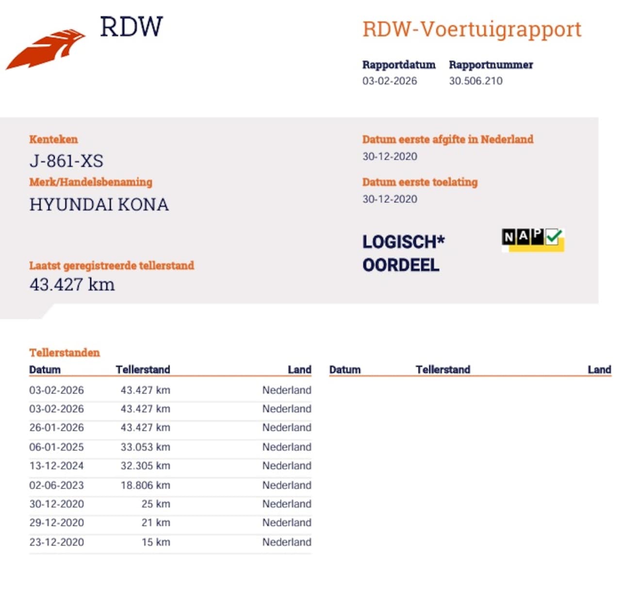 | Kilometerstand | 43.427 km |