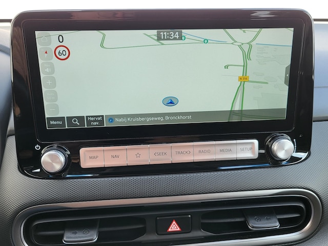 Qua technologie is de Kona EV volledig up-to-date met een Head-Up Display, Bluelink full map navigatie, een volledig digitaal instrumentenpaneel, Apple CarPlay, Android Auto, een draadloze telefoonlader, DAB-radio en het hoogwaardige Krell Premium Audio-systeem.