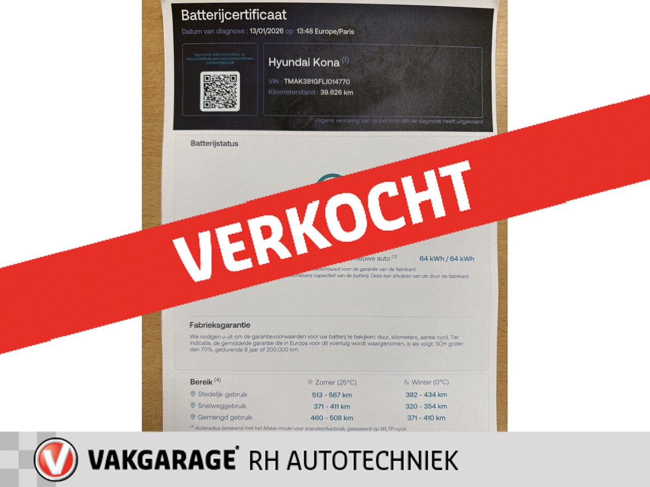 Hyundai Kona Electric - EV Fashion 64 kWh SOH 100% 3 fase