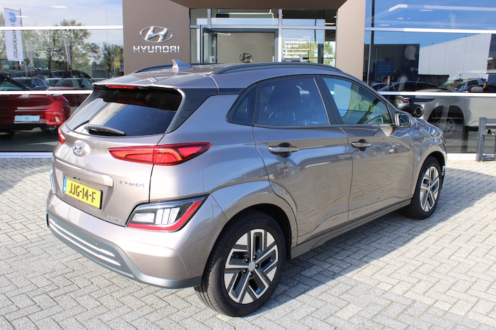 Bij Hyundai geldt het motto 'New Thinking. New Possibilities'. En dat merk je aan ieder model. De aandrijflijn maakt gebruik van de meest moderne accutechniek, zodat het opladen in zo kort mogelijke tijd gebeurt. Het rijbereik van deze auto is groot genoeg om er de meest voorkomende dagelijkse ritten mee te maken. De krachtige motor geeft deze Hyundai uitstekende prestaties. De achterbankverwarming, het verwarmbare stuurwiel en de verwarmbare voorstoelen brengen passagiers en bestuurder snel weer op temperatuur, ongeacht hoe koud het buiten is. Bij de zeer complete uitrusting van deze auto behoren ook 17 inch lichtmetalen velgen, LED koplampen, extra getint glas, in delen neerklapbare achterbank, LED-achterlichten en verstelbare lendensteunen. Met het digitale dashboard heeft u essentiële info in beeld. Altijd, overal. Omdat u nou eenmaal geen ogen in uw achterhoofd heeft, is het altijd lastig om achteruit te rijden zonder brokken te maken. De achteruitrijcamera lost dat probleem op. Met adaptive cruise control houdt de auto zelfstandig afstand tot uw voorligger. Een veiligheidsverhogende optie waarmee u comfortabel onderweg bent. De ingebouwde file assistent is een echte helper als het vaststaat onderweg. Het systeem meet ruimte tot de auto vóór u permanent en activeert zelfs de remmen als uw voorligger stopt. Spraakbediening verhoogt de veiligheid en het gebruiksgemak. De auto luistert naar uw instructies en volgt ze op. Natuurlijk behoren connected drive services, premium audiosysteem, full map navigatiesysteem, automatische airconditioning, draadloos opladen en DAB ontvangst ook tot de uitrusting van deze complete auto. Geavanceerde veiligheidssystemen kijken tijdens elke rit met u mee en schatten continu de risico's in. Recht voor u ziet u de weg én alle dashboardinformatie dankzij de head-up display Tijdens de rit hebt u altijd een bijrijder, want de verkeersbord-detectie leest de borden langs de weg en projecteert ze voor u op het instrumentarium. Het Lane-keeping systeem zorgt voor een automatisch constante positie binnen de rijstrook. Afdwalen is uitgesloten. Ook helpen het dodehoekdetectie, forward collision warning system, hill hold functie, vermoeidheidsherkenning, autonoom remsysteem en bandenspanningcontrolesysteem, uw rit tot een veilige rit te maken. Stel niet meer uit en kies nu voor elektrisch rijden! We zetten 'm graag klaar voor een proefrit. Eén belletje is genoeg.