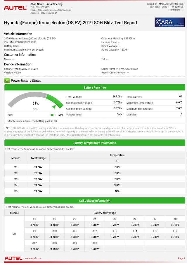 Accu: 64 kWh, Conditie: 93%