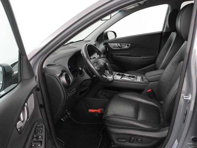 Kijk naar de onvergelijkbare vormgeving. De Hyundai Kona is een elektrische auto die zijn bijzondere karakter niet voor de buitenwereld verbergt. De fluisterstille elektromotor zorgt voor pittige rijprestaties zonder uitstoot. Maar wel met fiscaal voordeel! Koude start? Niet met de verwarmbare voorstoelen! Pak aan, 't is winter! Zo'n verwarmd stuurwiel is dan bijzonder prettig! Ook is de auto voorzien van: 17 inch lichtmetalen velgen, LED koplampen, extra getint glas, in delen neerklapbare achterbank, LED-achterlichten en verstelbare lendensteunen.