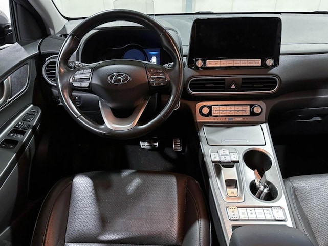 Duurzame mobiliteit is niet langer een ongrijpbare droom. Hyundai maakt het waar met de innovatieve elektrische Kona. De elektromotor laat jou geluidloos over de weg gaan. Wat een verademing, en zoveel power ook nog! Niets geeft meer gevoel van luxe en comfort dan een lederen interieur. Ook dat is hier meegeleverd Lekker hoor, die verwarmbare voorstoelen. Helemaal op koude dagen. Ook achterin is iedereen snel op temperatuur door de verwarmde achterbank. Tot de uitrusting van deze Hyundai behoren ook 18 inch lichtmetalen velgen, LED koplampen, donker getint glas achter, in delen neerklapbare achterbank, LED-achterlichten en verstelbare lendensteunen.
