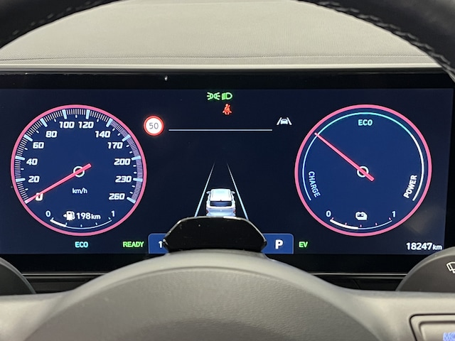 Geavanceerde systemen kunnen tijdens de rit bepaalde taken van je overnemen. Zo kijken er als het ware steeds extra ogen met jou mee, zodat je tijdig kunt reageren op noodsituaties. Dat de auto steeds meer taken van de bestuurder overneemt, merk je bijvoorbeeld aan het systeem voor verkeersbord-detectie in deze Hyundai. Met het Lane-keeping systeem kom je nooit per ongeluk buiten de rijstrook. Elke auto heeft een of meer blinde vlekken. De actieve dodehoekdetectie waarschuwt als er gevaar voor een aanrijding bestaat. Met voorzieningen als hill hold functie, vermoeidheidsherkenning, autonoom remsysteem en bandenspanningcontrolesysteem, ben je altijd veilig onderweg.