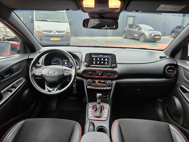 Een keurige auto, dat is deze Hyundai Kona, die 77597 kilometer heeft gelopen. De aandrijving van deze Hyundai wordt verzorgd door een viercilinder benzinemotor en een automatische transmissie. De uitmonstering van deze auto wordt gecompleteerd door onder meer 16 inch lichtmetalen velgen, dakspoiler, donker getint glas achter, in delen neerklapbare achterbank en verstelbare lendensteunen.