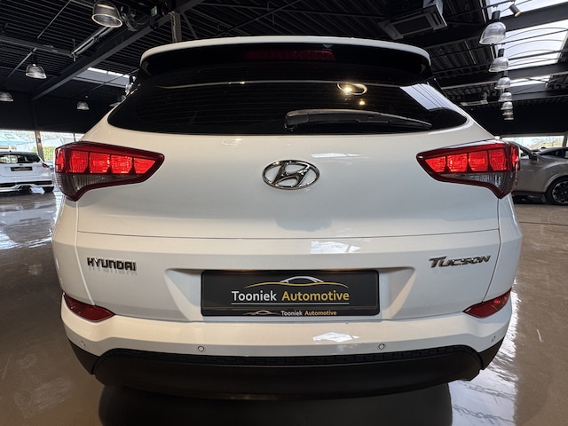 Overzichtelijk en veilig parkeren met de achteruitrijcamera. Overal en altijd. Aan boord van deze Hyundai Tucson is een achteropkomend verkeer waarschuwing voor extra veiligheid. Het drukke verkeer eist onderweg al uw aandacht op. Daarom is het goed dat deze Hyundai is voorzien van diverse systemen die u assisteren tijdens de rit. Een automatisch inschakelbare verlichting neemt het waar als het donker wordt of gaat schemeren, en schakelt dan automatisch de verlichting in. Op dezelfde manier "ziet" de regensensor de eerste spatjes regen en schakelt dan de ruitenwissers in, en als het harder gaat regenen zet hij de ruitenwissers ook in een snellere stand. Lekker koersen op een constante snelheid: daarvoor zorgt de cruise control. U vindt in deze auto ook airconditioning. Met dashboard met spraakbediening, full map navigatiesysteem, DAB ontvangst, automatisch dimmende binnenspiegel en centrale deurvergrendeling met afstandsbediening is deze auto helemaal compleet.