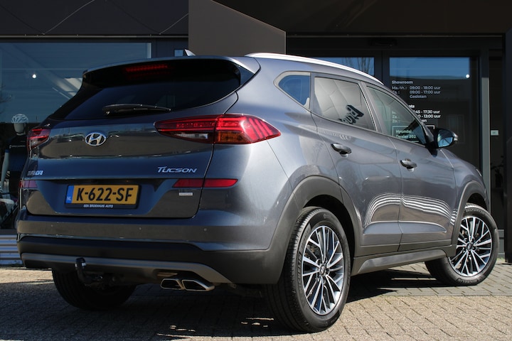 Deze Hyundai TUCSON gaat met gemak nog vele, vele, vele tienduizenden kilometers mee. Energiek rijgedrag, fraaie uitstraling en een plezier om in te rijden, deze Hyundai TUCSON. In deze auto vindt u een benzinemotor en een automatische transmissie. Een weldaad voor u en uw bijrijder: deze Hyundai TUCSON heeft verwarmbare voorstoelen. In deze auto profiteert u onder andere ook van: 17 inch lichtmetalen velgen, warmtewerend glas, adaptieve verlichting, in delen neerklapbare achterbank, LED-achterlichten en verstelbare lendensteunen. De achteruitrijcamera brengt precies in zicht wat zich achter u bevindt en toont een glashelder beeld op hoge resolutie. Een geluidssignaal waarschuwt hoeveel ruimte u nog heeft. Als u de adaptive cruise control inschakelt, regelt de auto zelf de snelheid en de afstand tot de auto voor u. De auto is voorzien van een trekhaak en is een uitstekende caravantrekker. De snelste of zuinigste weg? Het full map navigatiesysteem aan boord wijst de juiste weg! De sensoren van de achteropkomend verkeer waarschuwing houden zicht op de dode hoeken achter u. Te weinig afstand tot de achterligger? Het systeem geeft direct een signaal. Deze Hyundai is voorzien van automatische airconditioning, draadloos opladen, DAB ontvangst, regensensor, automatisch dimmende binnenspiegel en lederen stuur. De nieuwste veiligheidssystemen komen in deze Hyundai TUCSON samen. De camera van de verkeersborddetectie herkent verschillende soorten verkeersborden en toont deze op het dashboard. Het Lane-keeping systeem zorgt dat u mooi binnen de lijntjes blijft. Ongemerkt buiten de rijstrook komen is er niet meer bij. In een noodsituatie waarschuwt forward collision warning bij een dreigende aanrijding met een voorligger. Bovenop deze veiligheidsfeatures heeft deze Hyundai bovendien hill hold functie, brake assist, vermoeidheidsherkenning en bandenspanningcontrolesysteem. Wilt u deze auto zelf ervaren? Neem dan contact op met een van onze medewerkers.